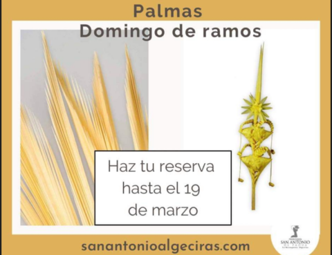 Es tradición que el domingo de ramos se bendigan palmas y ramos de olivos para, a semejanza de la entrada triunfal de Jesús en Jerusalén, le acompañemos al comienzo de la Semana Santa. Este año tenemos dos modelos, lisa y rizada. Si deseas una palma, que después podrás colocar en el balcón o en casa,…